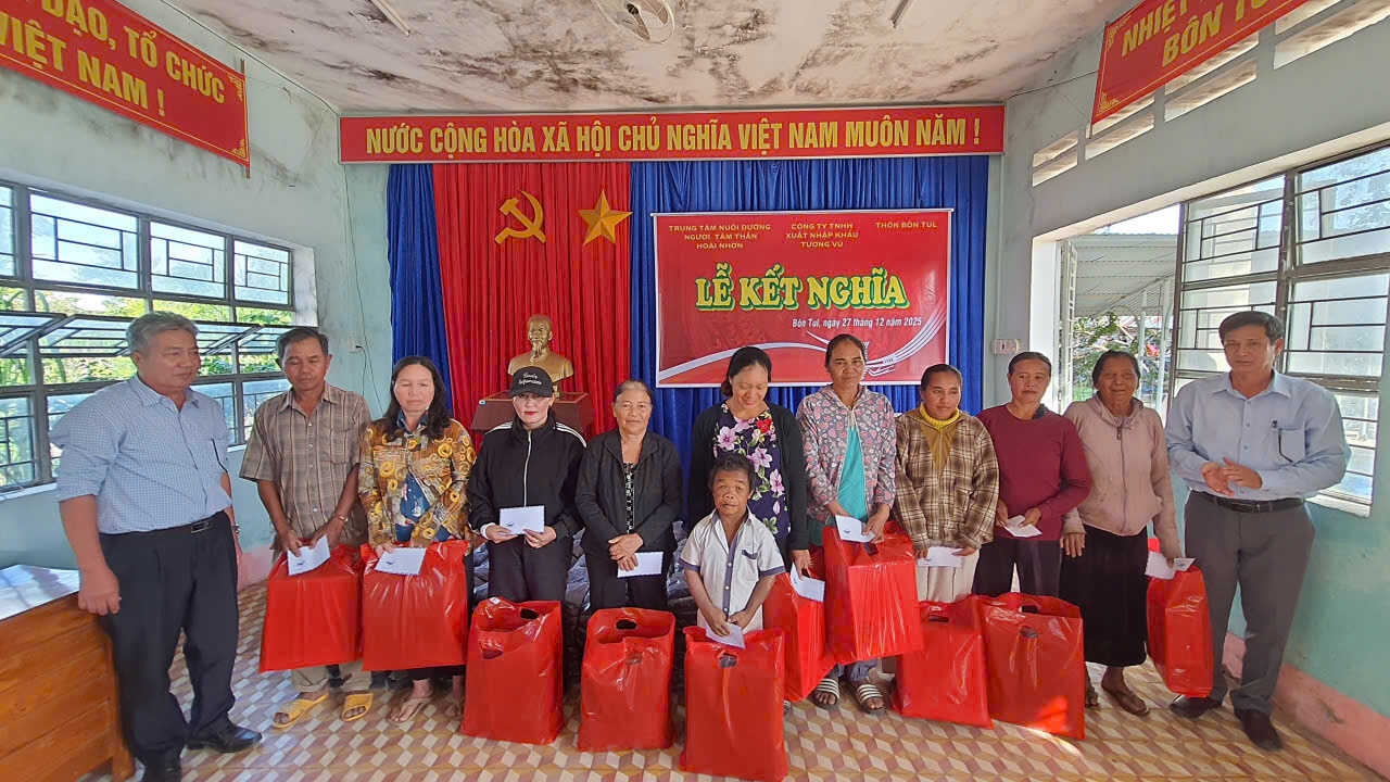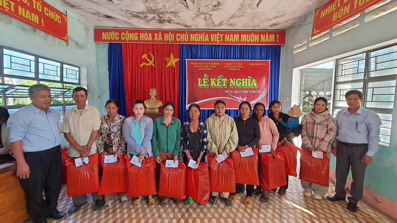 ẤM ÁP LỄ KẾT NGHĨA GIỮA TRUNG TÂM NUÔI DƯỠNG NGƯỜI TÂM THẦN HOÀI NHƠN, CÔNG TY TNHH XNK TƯỜNG VŨ VỚI THÔN BÔN TUL